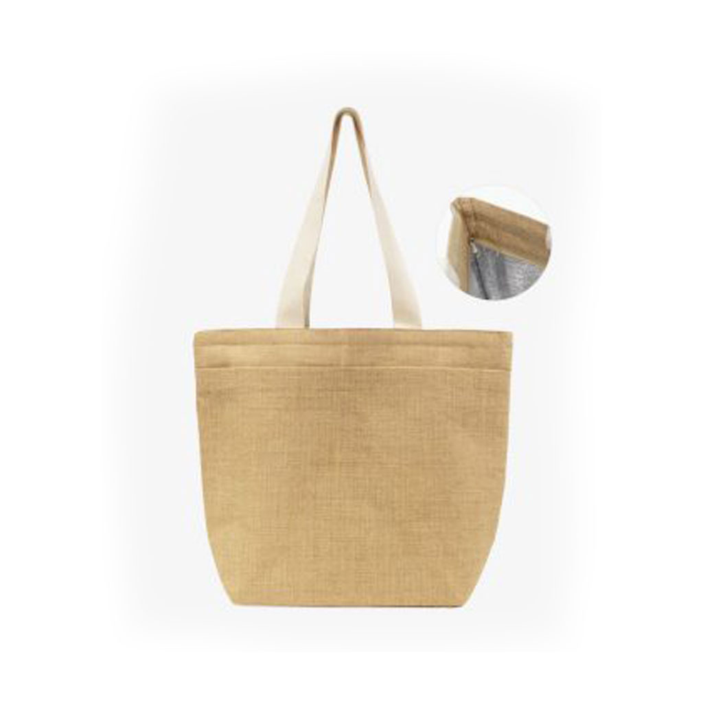 • Bag Description: Jute Tote Bag with Bottom Gusset, Insulation & Zipper